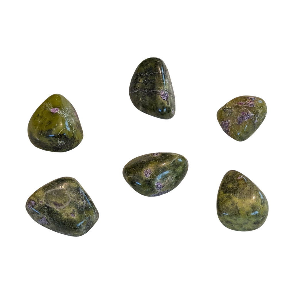 Atlantisite (aka Tasmanite), is a relatively rare and new discovery in the mineral world. This powerful stone is a beautiful combination of yellowish green Serpentine and pink to purple inclusions of Stichtite, bringing together both of these minerals’ properties. It is one of the most powerful forms of serpentine next to Infinite.