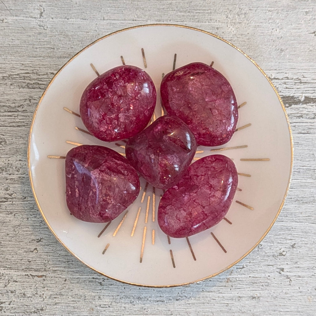 Coloured Crackle Quartz Crystal Tumblestone UK - Burgundy - Fire & Ice Quartz - Vein Quartz