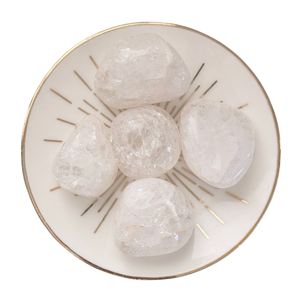 Crackle Quartz Crystal Tumblestone UK - Vein Quartz - Fire & Ice Quartz - Chakra Stones