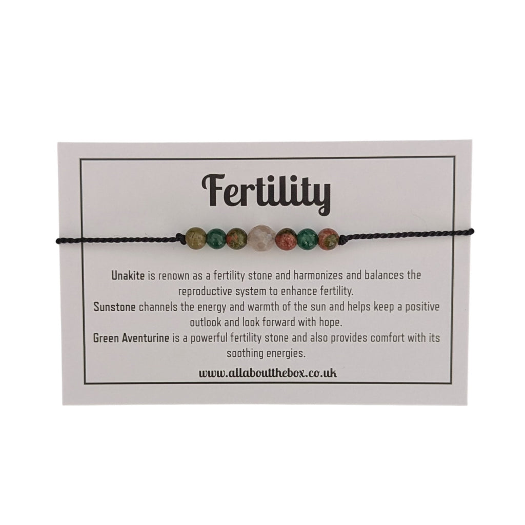 This crystal bracelet is made up of Unakite, Sunstone and Green Aventurine crystals. They have been chosen as they are believed to promote fertility, and have been carefully placed together to make this beautiful bracelet.