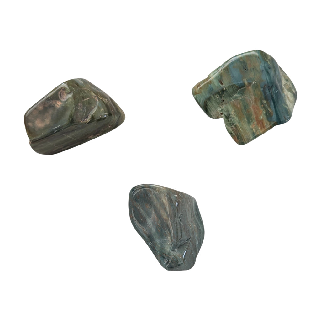 Green Fossil Wood tumblestones colour is primarily due to chromium, although on occasions nickel has also been identified, that was present as the tree slowly turned to stone, giving it the green tones and colour that we see today.