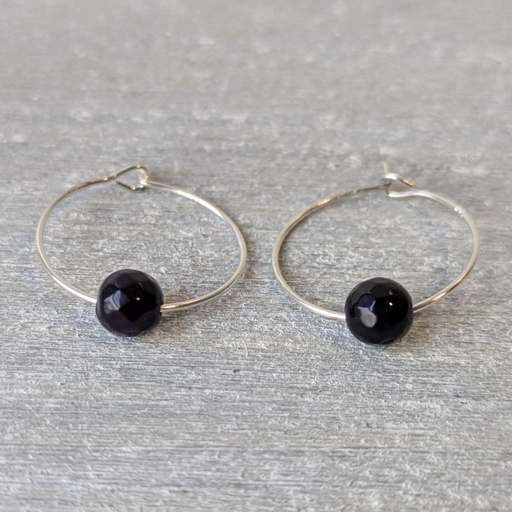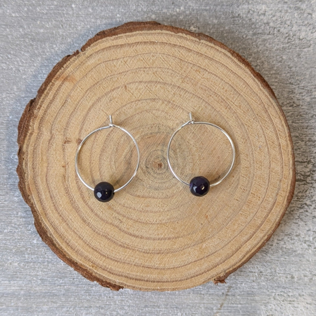 Mini Purple Agate Sterling Silver Crystal Hoops