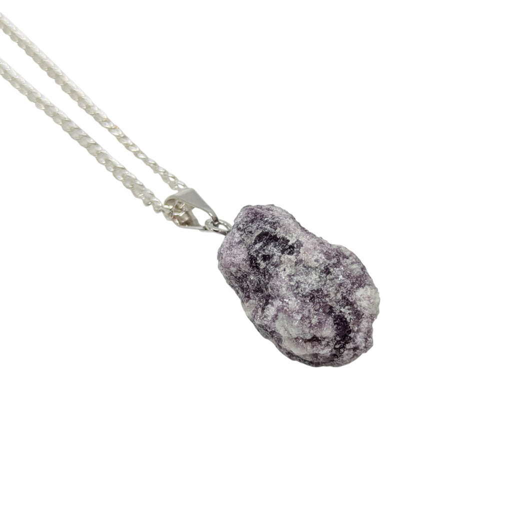 Natural Raw Lepidolite Crystal Necklace UK - Gift Boxed - Gemstone Jewellery - Peace Stone - Chakra Necklace