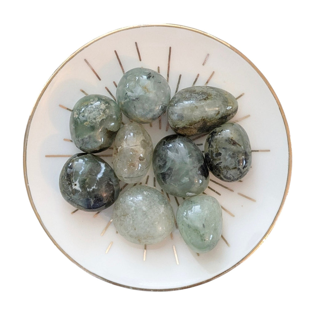 Prehnite with Epidote Inclusions Tumblestone - A Stone for Dreaming - Gemstone for Libra