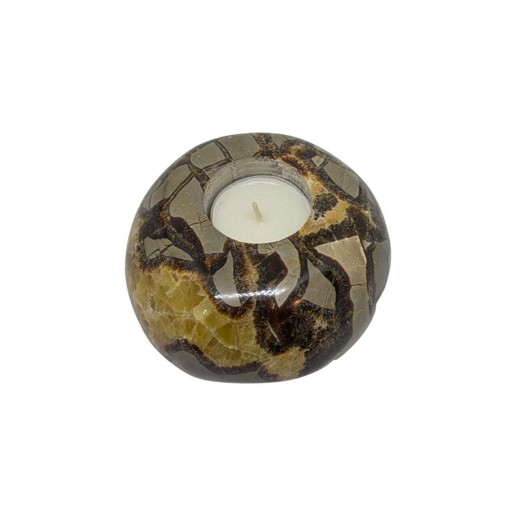 This listing is for a stunning, one-of-a-kind polished Septarian tealight holder, which is sold as seen.