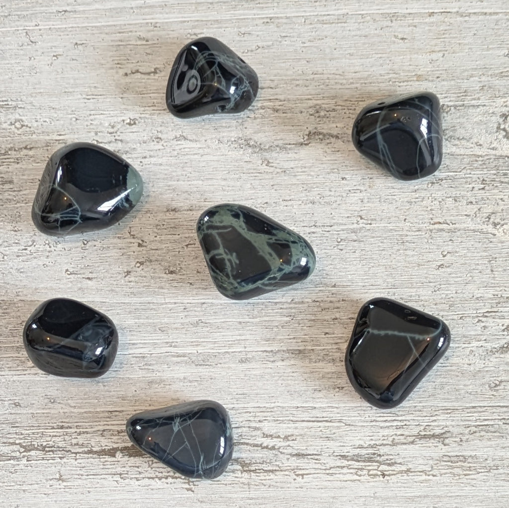 Spider Web Obsidian is a powerstone that is said to provide strength in times of need and help you to overcome negative energies. It is said to be a calming stone that helps reduce stress whilst also helping you to see life's bigger picture and gain insight around the path to travel. Obsidian is a natural volcanic glass that forms when lava cools so quickly that no crystals can form. The intricate pattern of Spider Web Obsidian is caused on these stones by the bluey/grey-green Obsidian cooling at a different rate to the Black Obsidian and being "stretched" within it.