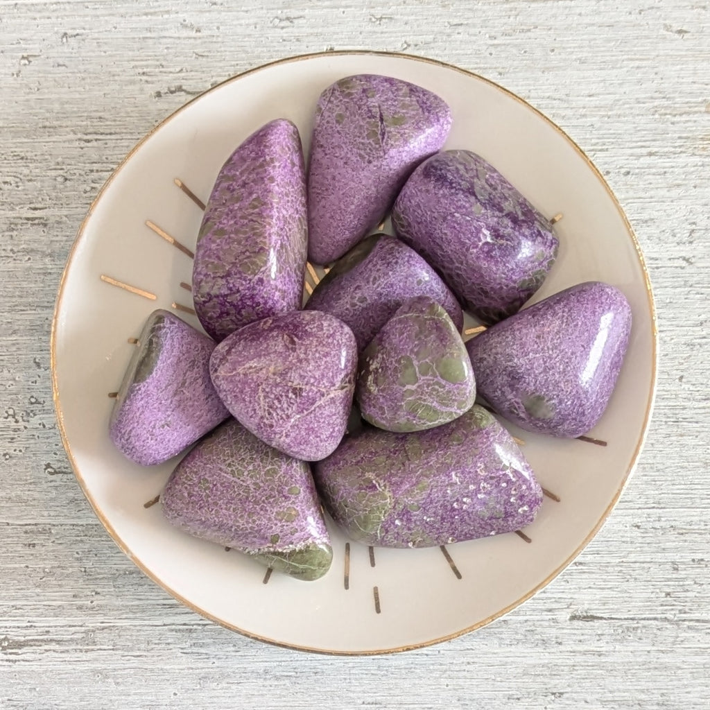 Stichtite originates from Australia and has a joyful and youthful energy. It is called the "Stone of Rescue, Recovery & Forgiveness" as it is thought to help us resolve emotional issues by emitting vibrations of love and compassion and encouraging us to let go of thoughts, feelings and negative emotions that no longer serve us. It also encourages forgiveness both of others and of ourselves, helping us to bounce back and try again.